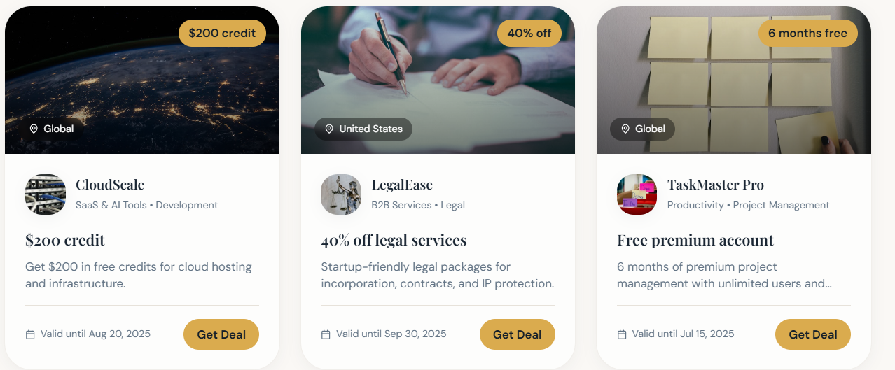 Browse curated deals across SaaS, AI tools, B2B services, and lifestyle perks — all in one place.